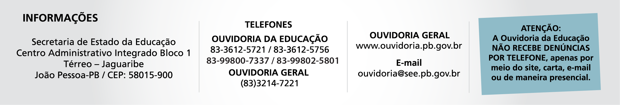 Telefones: (83) 36125600/ 36125601/ 36125602
